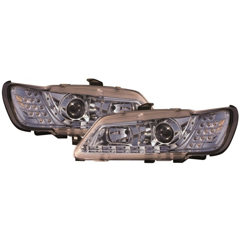 Set fari fanali proiettori anteriori TUNING per PEUGEOT 306, 1993-04/1997 cromati con luci diurne DRL LED DAYLINE