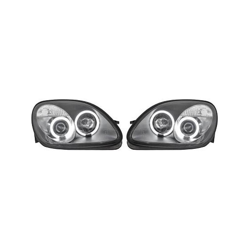 Set fari fanali proiettori anteriori TUNING per MERCEDES SLK R170 1996-2004 neri con anelli ANGEL EYES CCFL alta potenza
