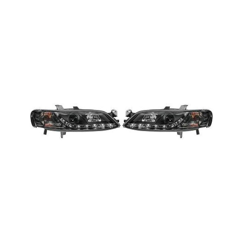Set fari fanali proiettori anteriori TUNING OPEL VECTRA B 1999-2002 neri luce diurna LED DRL DAYLINE